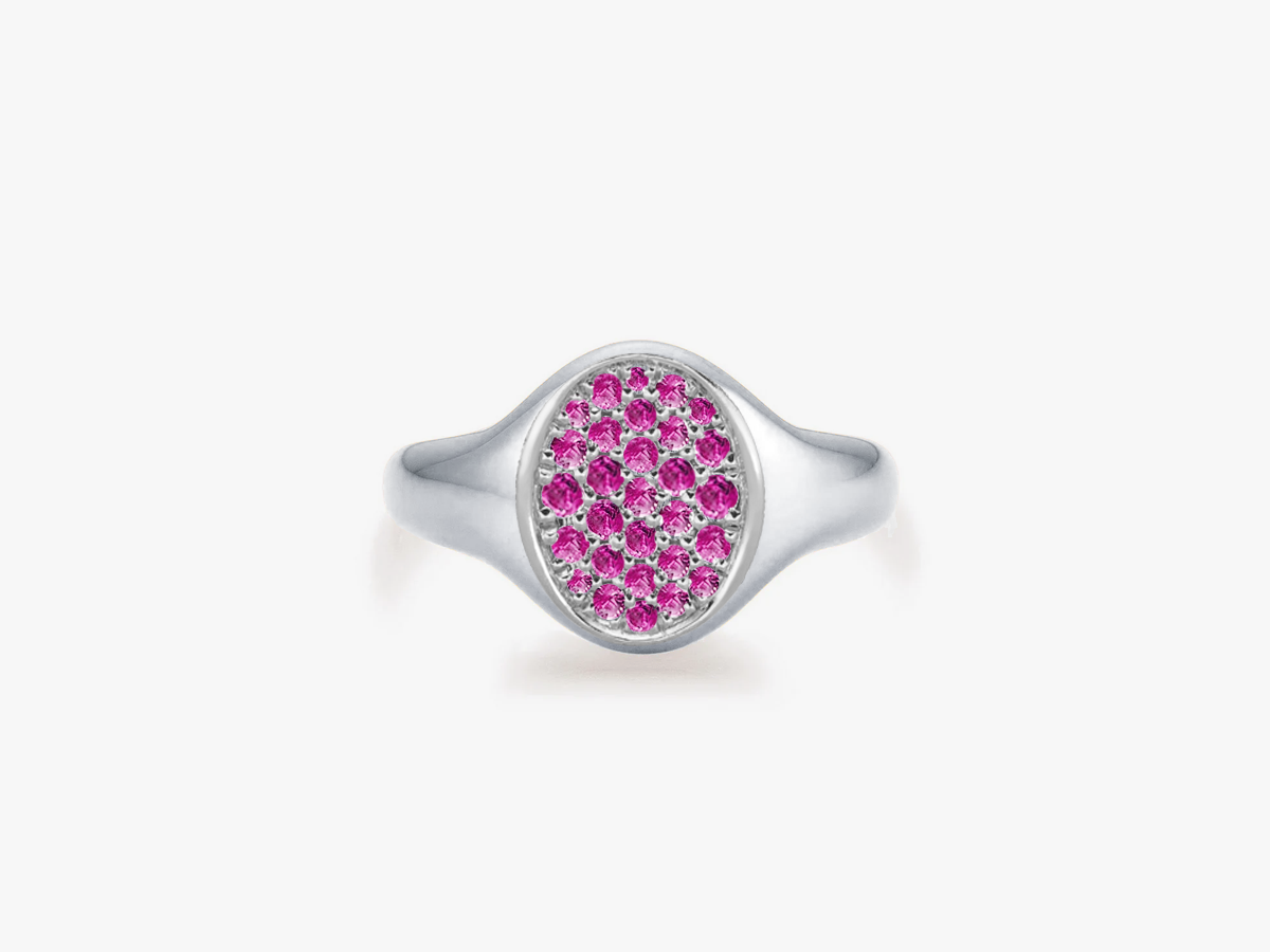 PETITE POSH SIGNET Pinky Ring - Pink Saphir Crown